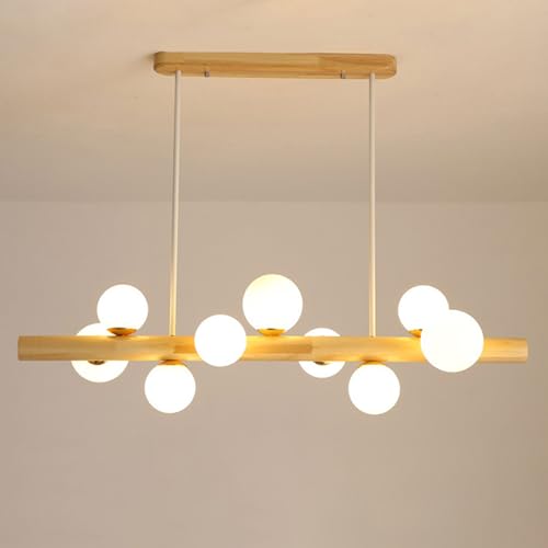 Pilanp Luminaires Suspendus en Bois Simples avec lustres en Verre Globe îlot de Cuisine Lustre linéaire éclairage de Lustre d'intérieur pour Salle à Manger Chambre Restaurant Bureau