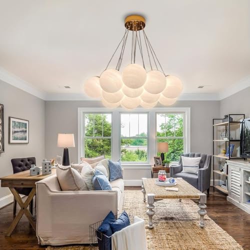 LYSDjia Lustres Grand intérieur Spoutnik Bubble Globe 13 lumières blanc petit globe en verre pendentif Suspension Luminaire moderne lustre de plafond pour salon salle à manger chambre prise G9 incluse