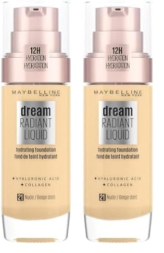 Maybelline New York - Fond de Teint Fluide Perfecteur de Teint - FPS13 - Dream Satin Liquid - Beige Doré (21) - 30 ml (Lot de 2)