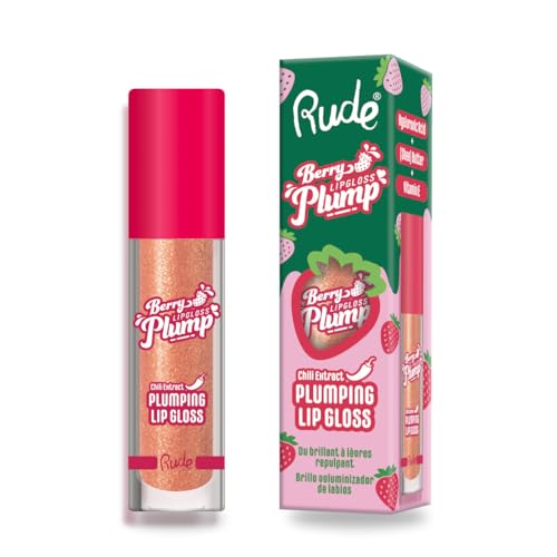 RUDE - Berry Plump Plumping Lip Gloss | Teinte Pink Sugar | Volumateur avec Fini Brillant et Juteux | Formule Non Collante | Parfait Seul ou Sur un Rouge à Lèvres, Pink Sugar, 1 ml (Pack de 1)