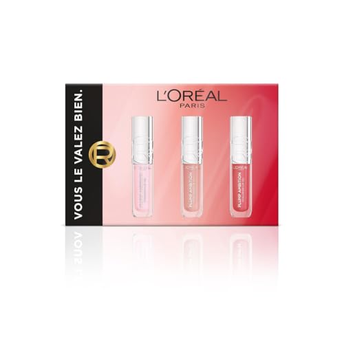 L'Oréal Paris - Coffret Maquillage Lèvres Plump Ambition - 3 produits - Gloss Plump Ambition à l'Acide Hyaluronique - Teintes 101 Crystal Clear, 601 Worth It, 380 Rouge in Love