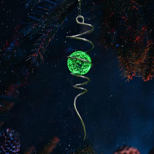 Goollyrusim Glow in The Dark Gazing Ball Spirale, Wind Spinner Tail, Wind Spinners Stabilisateur, Hanging Outdoor Decor for Garden Cour Art Decor Christmas Ornement Sun Catcher Rainbow Maker 13 pouces
