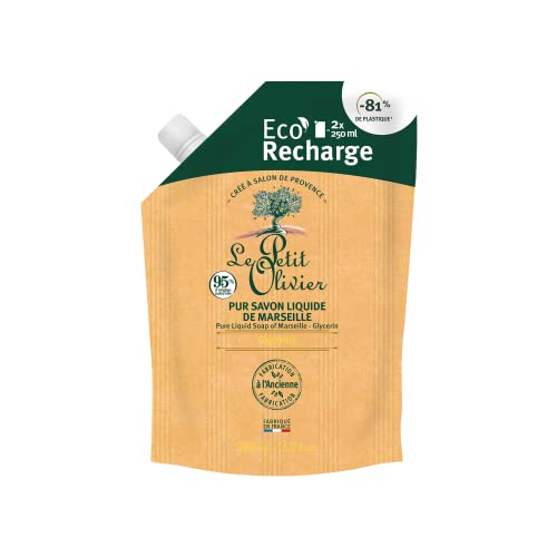 LE PETIT OLIVIER - Éco-Recharge Pur Savon Liquide De Marseille - Naturellement Glycériné - Nettoie La Peau En Douceur - 95% D'Origine Naturelle - Fabriqué En France - 500ml