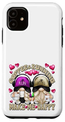 Funny Coffee and Running Gnomes for Runners & Coffee Lovers Coque pour iPhone 11