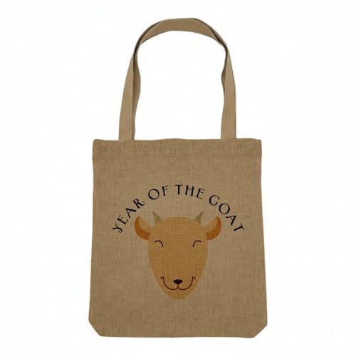 Sac Shopping Tote Bag Aspect Lin - Year of the Goat Chinese Astrology Sign Zodiac Animal Horoscope Drawing - Sac de Courses Toile Epaisse 360g Beige Naturel Cabas Porté Epaule Solide Imprimé en France