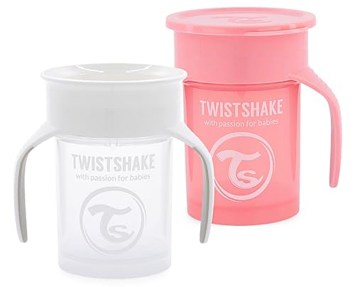 Twistshake 2x Gobelet 360 Anti-Éclaboussures Pour Bébé Avec Joint En Silicone - 230ml | Gobelet D'entraînement Pour Enfants | Bouteille D'eau Étanche | Sans BPA | Blanc Rose