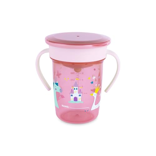 Miniland - Gobelet d’Apprentissage Antifuite 360º pour Bébé, avec Poignées et Couvercle, Compatible Lave-Vaisselle, Sans BPA, 270ml (Fantasy)