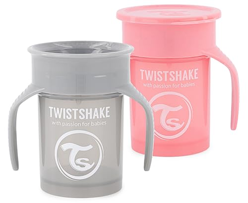 2 x Twistshake 360 Cup Gobelet d'Apprentissage à Boire à Bec 230 ml, Tasse d'Entraînement Bébé à Bec, Bordure 360° Antifuites, Ergonomiques, Sans BPA, 6+ Mois et, Gris Pastel & Bleu Pastel