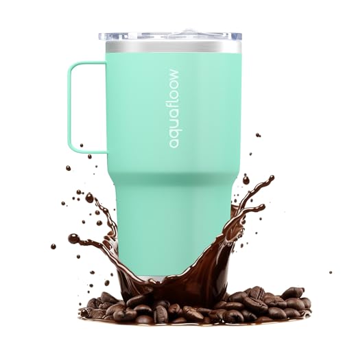 Aquafloow Gobelet Thermique Réutilisable à Double Paroi Isolé en Acier Inoxydable 800ml, Tasse à Café avec Couvercle Anti-fuite pour les Voyages, le Camping, le Vélo, le Plein Air – Menthe