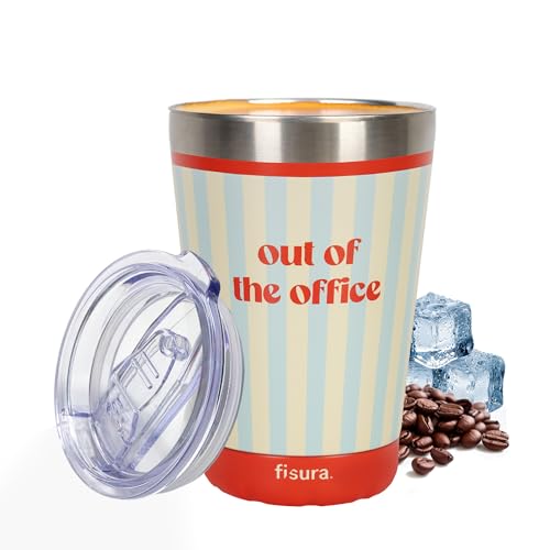 Fisura – Mug isotherme original “Out of the office”. Gobelet thermique nomade bleu et beige pour café à emporter 310 ml. Tasse isotherme en acier inoxydable pour voiture. Sans BPA. Cadeau amusante