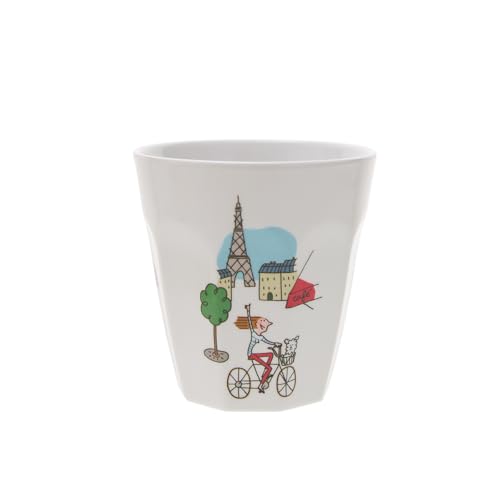 Petit Jour, Gobelet en Mélamine, 220ml, Blanc, Design à Facettes, Thème Paris à Vélo, Pour Café/Jus/Brossage de Dents, Usage Quotidien