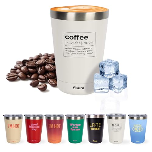 Fisura – Gobelet isotherme original blanc 310 ml. Tasse isotherme en acier inoxydable sans BPA pour café à emporter. Tasse thermique compatible voiture.