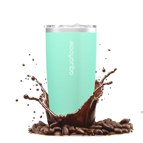 Aquafloow Gobelet Thermique Réutilisable à Double Paroi Isolé en Acier Inoxydable 500ml, Tasse à Café avec Couvercle Anti-fuite pour les Voyages, le Camping, le Vélo, le Plein Air – Menthe