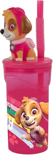 PAW PATROL p:os 30129049 Gobelet avec Paille au Design Populaire Pat' Patrouille, avec Figurine 3D Skye sur Le Couvercle, capacité : Environ 360 ML, récipient pour Enfants en Plastique