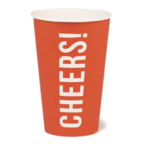 Paquet de 8 (455 ml / 16 oz) gobelets en papier rouge avec motif Cheers, recyclable à la maison, écologique et sans plastique, idéal pour le bière-pong, le barbecue, la célébration
