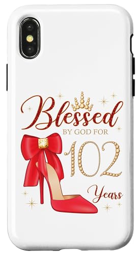 Blessed by God for 102 Years Old Fête d'anniversaire Reine Coque pour iPhone X/XS