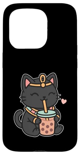 Kawaii Chat Boba Japonais Bastet Coque pour iPhone 15 Pro