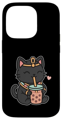 Kawaii Chat Boba Japonais Bastet Coque pour iPhone 14 Pro