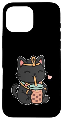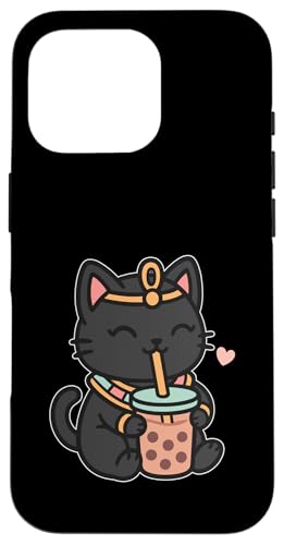 Kawaii Chat Boba Japonais Bastet Coque pour iPhone 16 Pro