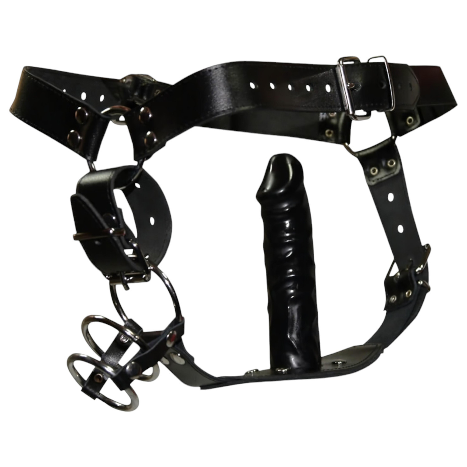 ZADO - string cuir avec gode et 3 anneaux péniens