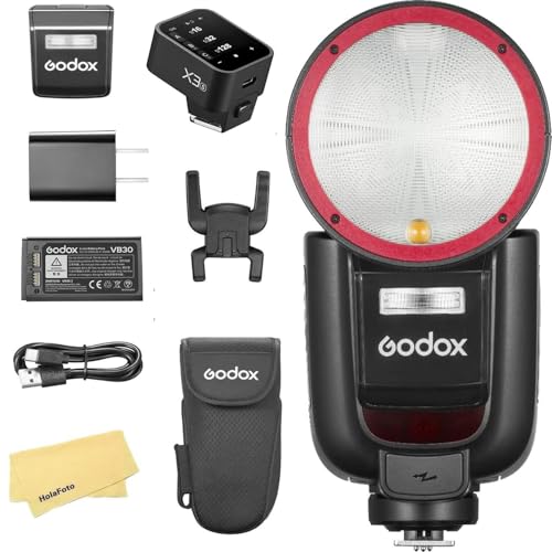 Godox V1 V1-F V1F Flash avec déclencheur X3-F pour Fujifilm,76Ws 2.4G TTL 1/8000 HSS,480 Prises de Vue à Pleine Puissance,Temps Recyclage 1.5s,Batterie Li-ion 2600mAh,Lampe Modélisation LED 10 Niveaux