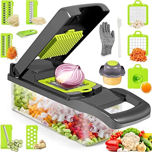 T-GOGO Mandoline de Cuisine Manuelle,13 in 1 Coupe legumes Multifonctions avec Boîtes De Rangement, Mandoline Professionnelle Cuisine pour Trancher, Couper et Râper Les Légumes