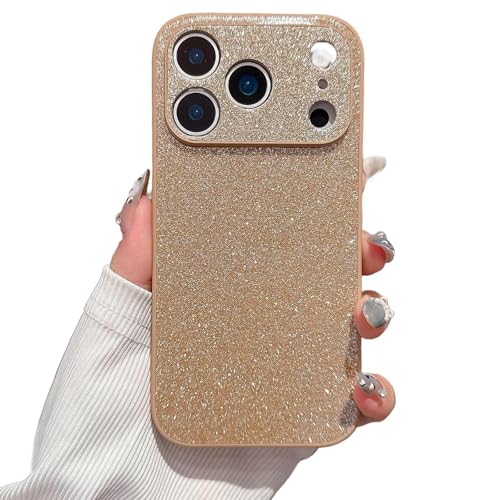 Générique High-End Glitter Electroplated Case, Luxury Glitter Frosted Phone Case Finish Shiny Full Body for iPhone 17/16/15/14/13/12/ Pro Max (Golden,iPhone 17 Pro)