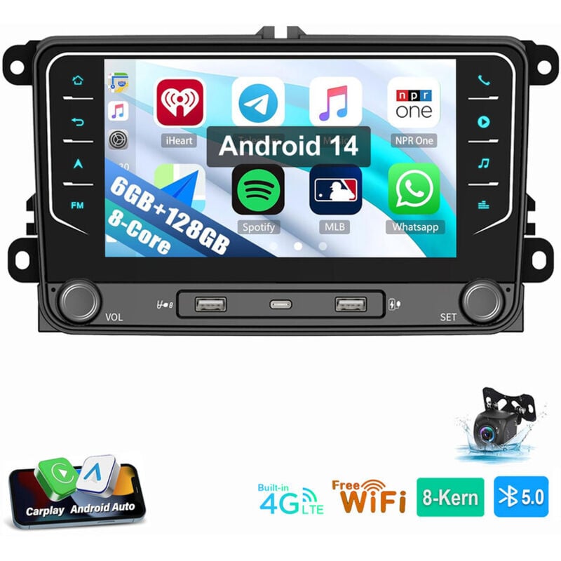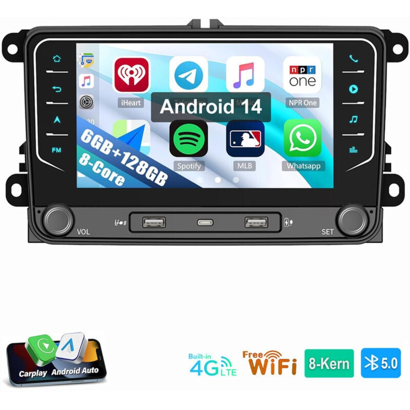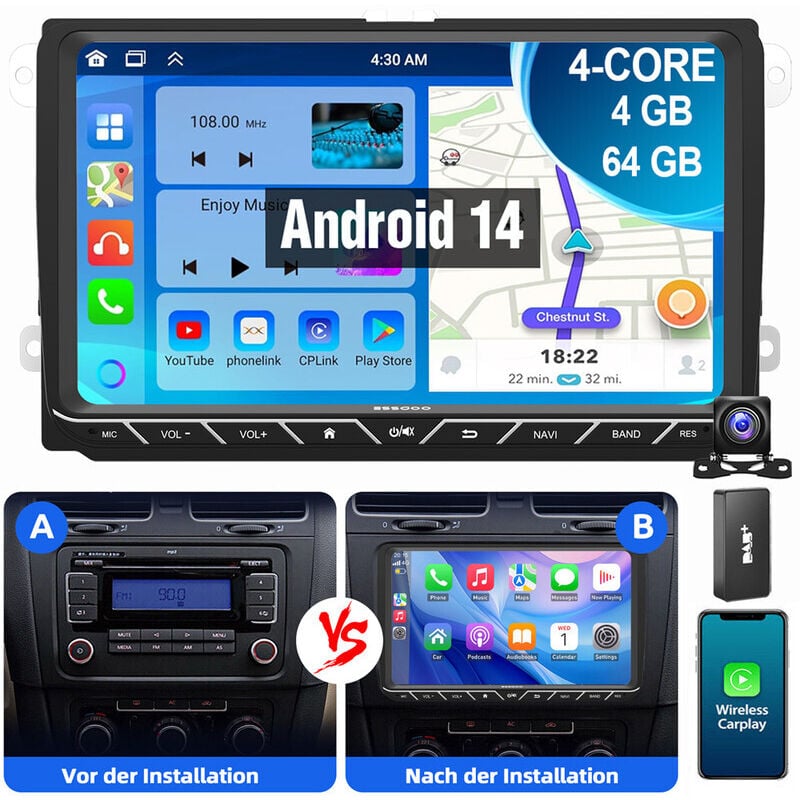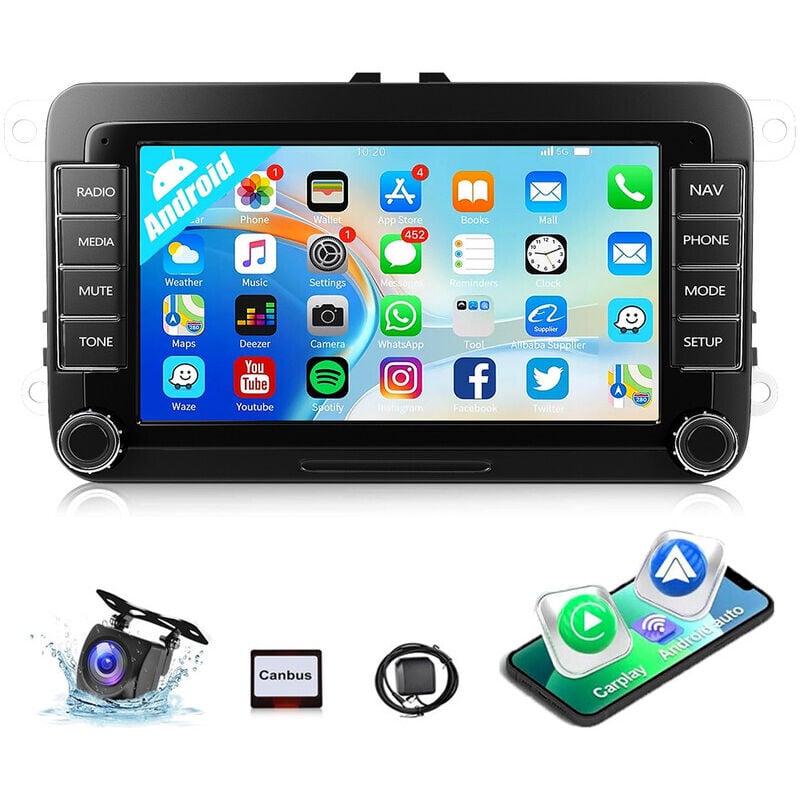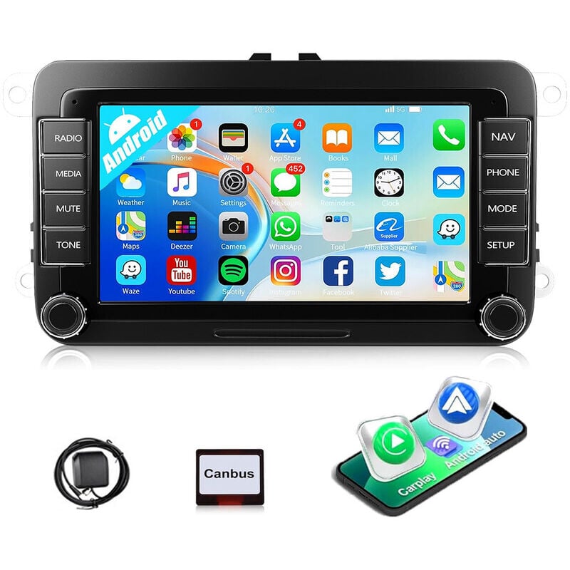 ESSGOO Autoradio 7" Android 14 4G+64G Apple Carplay GPS NAVI WIFI RDS FM Bluetooth pour VW Golf 5 6