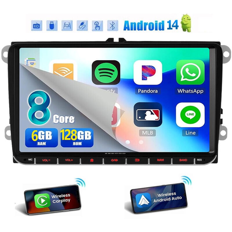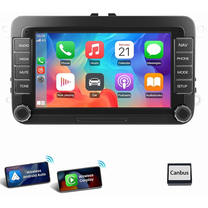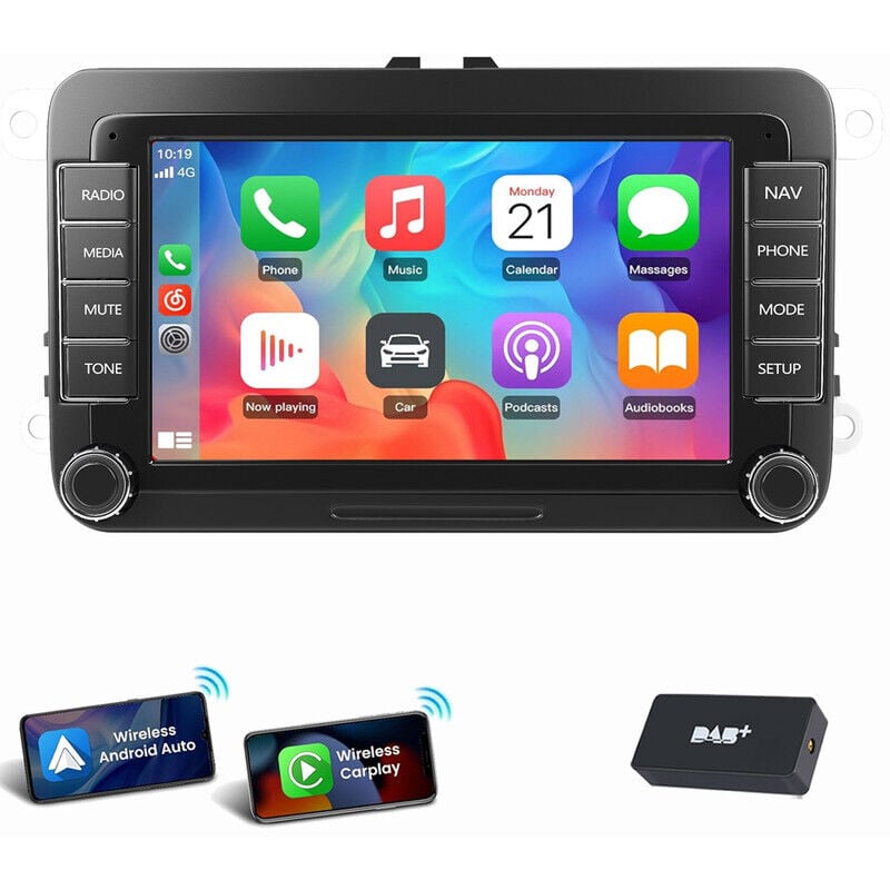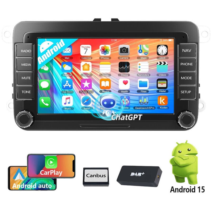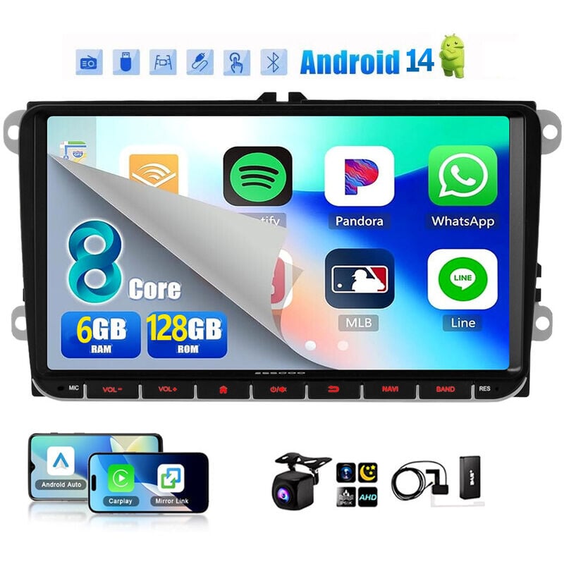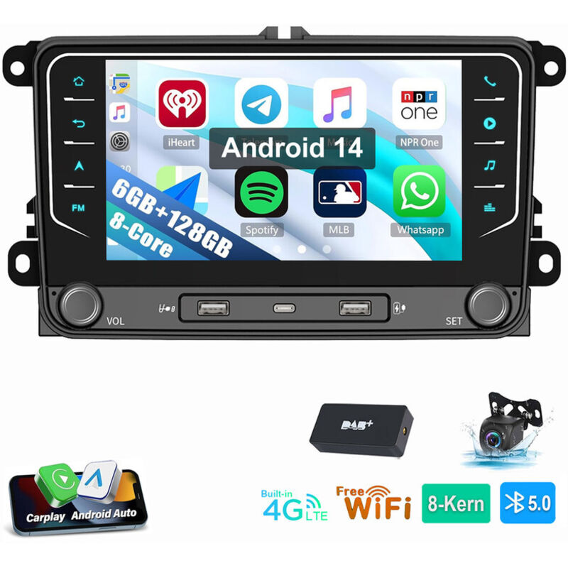 ESSGOO Autoradio 7" Android 14 4G+64G Apple Carplay GPS NAVI WIFI RDS FM Bluetooth pour VW Golf 5 6