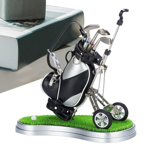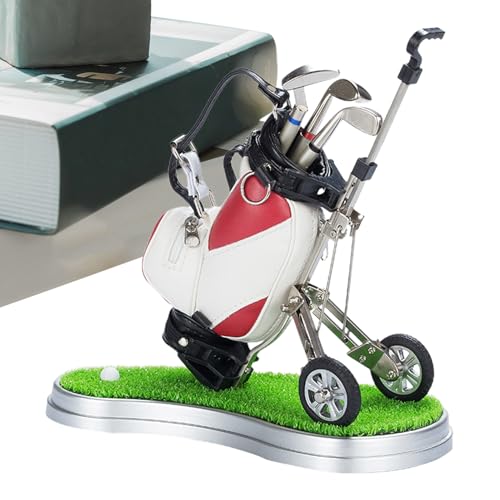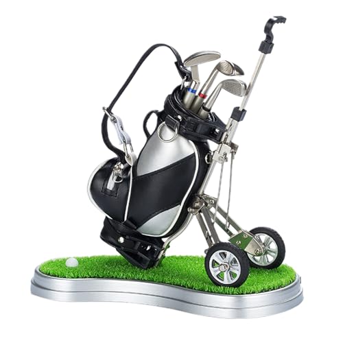 Porte-Stylo de Golf, Porte-Stylo pour Sac de Golf, Sac de Miniature avec Chariot, 3 stylos Clubs de, Souvenirs de, Cadeaux de Noël pour Papa, Mari, golfeurs Adultes