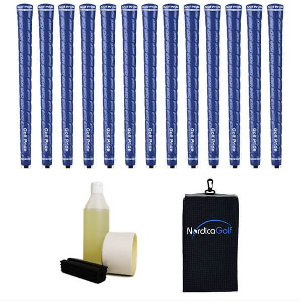 Golf Pride Tour Wrap 2G Blue - kit de 13 grips, caoutchouc pour étau, solvant, adhésif et serviette.