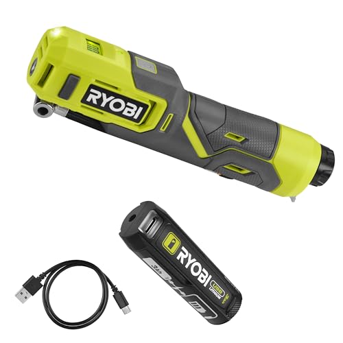 RYOBI - Gonfleur dégonfleur sans-Fil 4 Volts - Gros débit : 200 L/Min - Livré avec 3 Embouts de gonfleur + Batterie 3,0 Ah utisable en Tant Que Batterie Externe, livrée avec Son câble USB-C