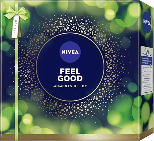 NIVEA Feel Good Coffret cadeau pour femme, coffret cadeau avec gel douche (250 ml), shampoing (250 ml), lotion pour le corps (400 ml) et déodorant (50 ml)