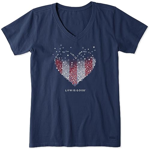 Life Is Good T-Shirt à Manches Courtes avec col en V pour Femme Moyen Bleu foncé.