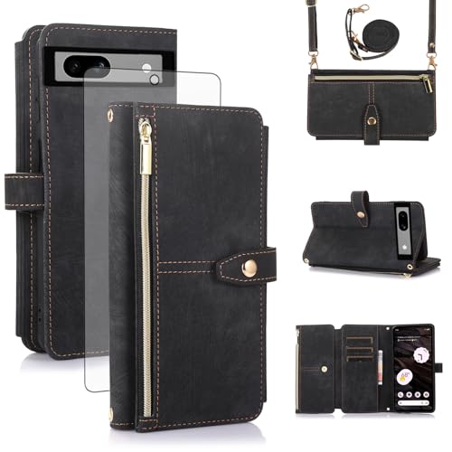 Asuwish Étui de protection pour téléphone portable Google Pixel 7a avec bande de film de protection d'écran - Compartiment pour cartes - Pliable - En cuir - Support Pixel7a 5G a7 - Noir