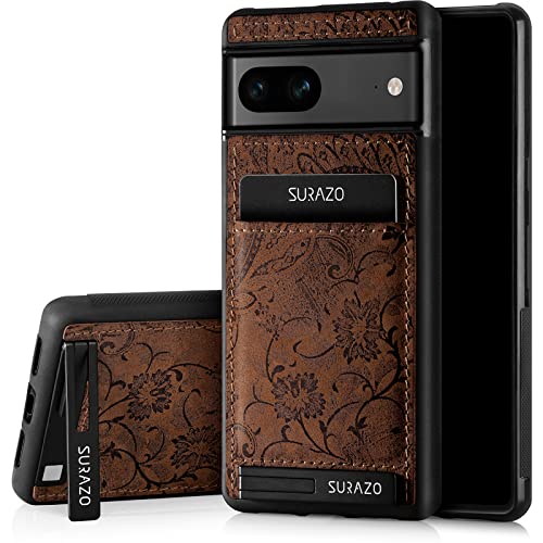 SURAZO Premium Étui de Protection arrière en Cuir véritable pour Google Pixel 7A, résistant aux Chocs avec [Compartiment pour Cartes, Support, Porte-clés] Floral Slim Bumper Étui de Protection