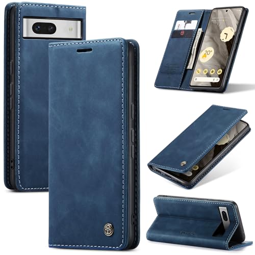 AKABEILA Étui pour Google Pixel 7A en cuir synthétique de qualité supérieure avec fermeture magnétique, béquille et emplacements pour cartes, coque de téléphone anti-choc, bleu