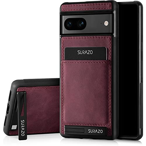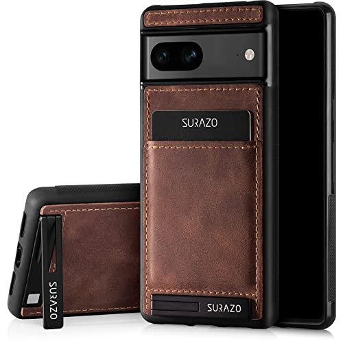 SURAZO Étui de Protection arrière en Cuir véritable de qualité supérieure pour Google Pixel 7A - Étui de Protection en Cuir résistant aux Chocs avec Compartiment pour Cartes, Fonction Support,