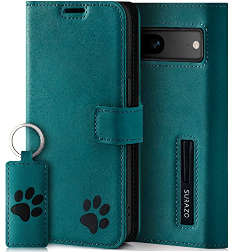 Samokor Coque pour Google Pixel 7A 5G Housse Cuir Premium Etui Rabat Pochette Portefeuille Fentes Cartes Magnétique,Étui Protection pour Google Pixel 7A 5G,Bleu Vert