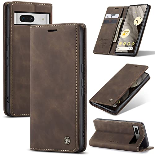 Samokor Coque pour Google Pixel 7A 5G Housse Cuir Premium Etui Rabat Pochette Portefeuille Fentes Cartes Magnétique,Étui Protection pour Google Pixel 7A 5G,Café