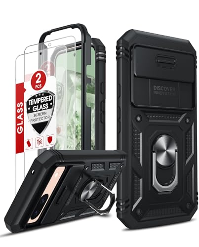 LeYi Coque pour Google Pixel 8A/8 A avec 2*Verre Trempé+Anneau Support,Full Protection de la Caméra en PC Dur Anti-Chut Renforcée Armor Heavy Duty Antichoc Bumper Housse Etui,Noir