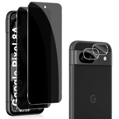 QULLOO 2+2 pièces Anti-Espion Verre Trempé pour Google Pixel 8A,Protecteur d'Objectif de Caméra Arrière, 9H Dureté Privacy Protection écran, Anti-Rayures Anti-Spy Film