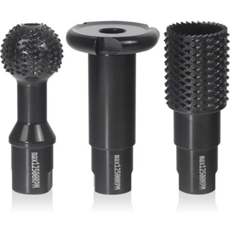 CCYKXA Set de 3 Fraise à Bois - Disques Meuleuse Sculpture Bois Burrs Rotatifs, Gouge et Ciseaux à Bois pour Meuleuses 115/125 - Outils de