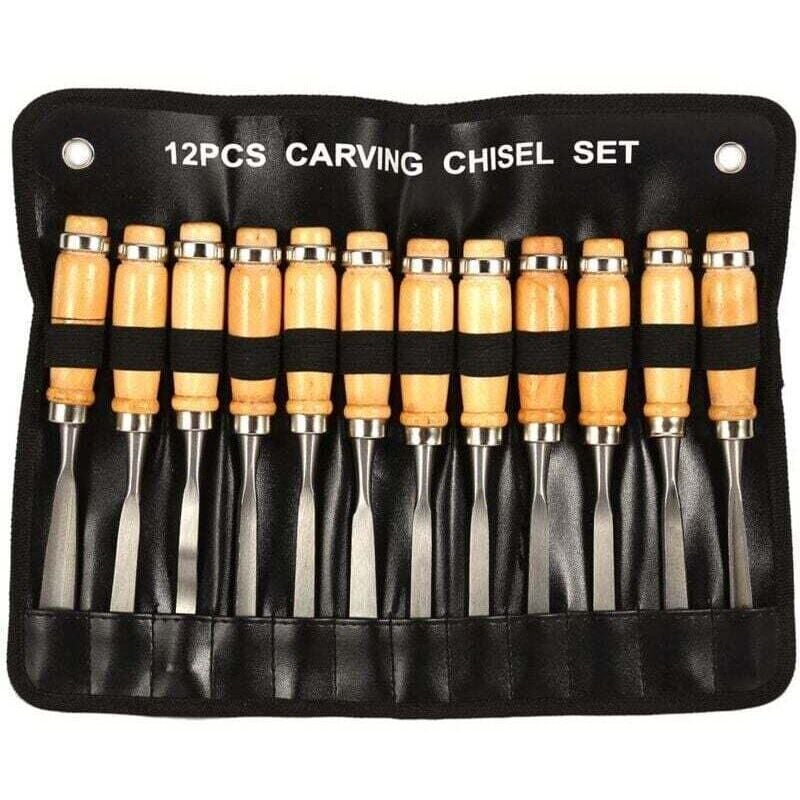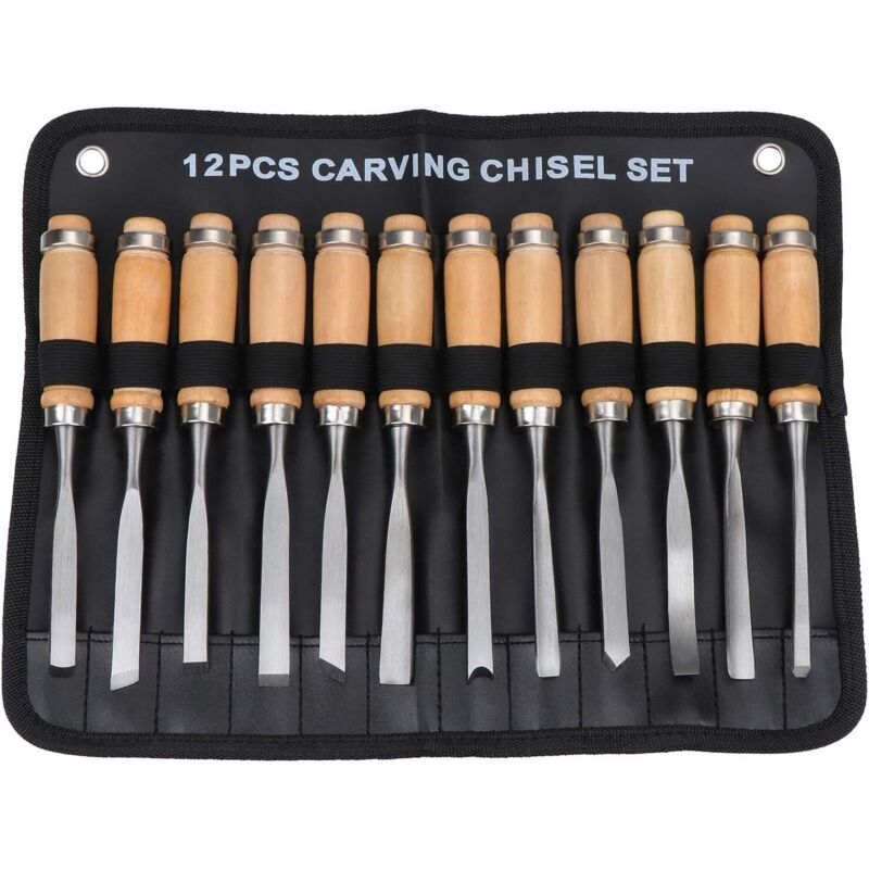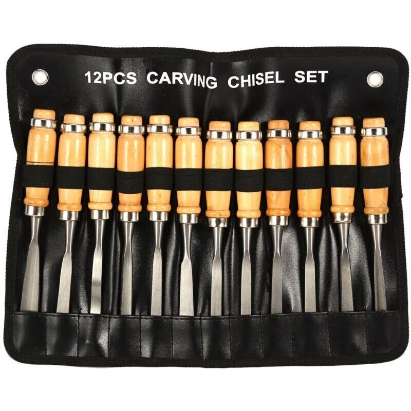 SucceBuy 12 pièces sculpture sur bois main ciseau ensemble tour couteau bricolage tournant travail du bois Gouges professionnelles artisanat du bois menuiserie outils