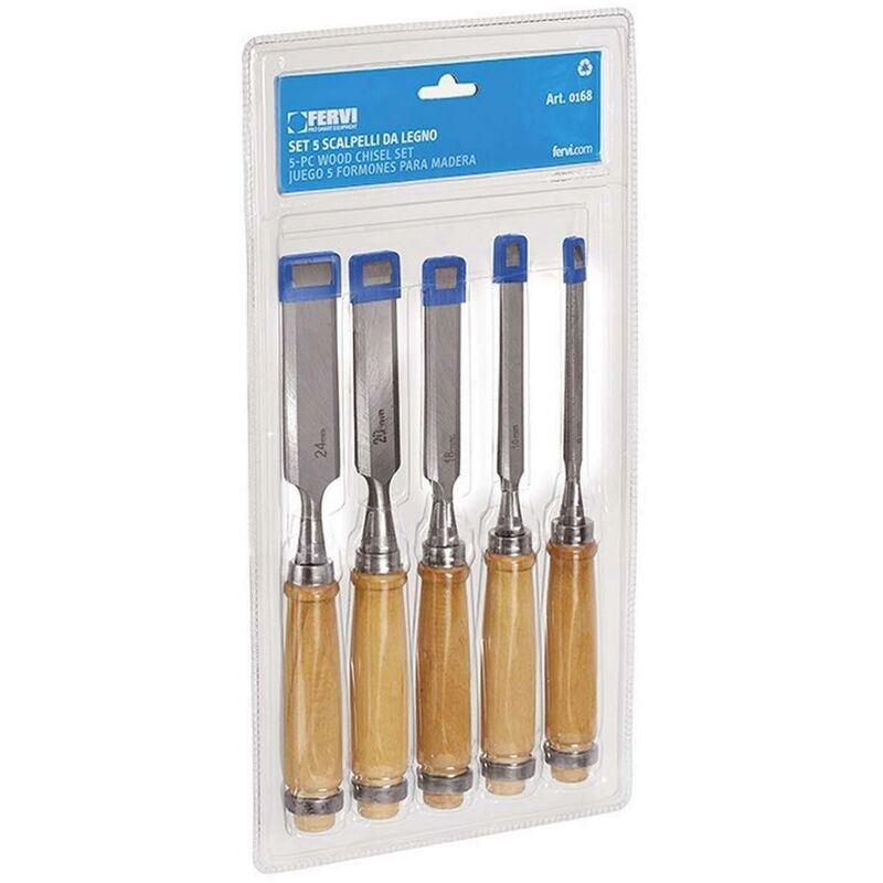 Jeu 5 gouges ciseaux outils a bois Fervi 0168
