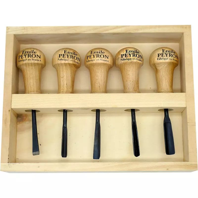 Coffret de 5 gouges de sculpteur - Manche bois Emile Peyron 1116