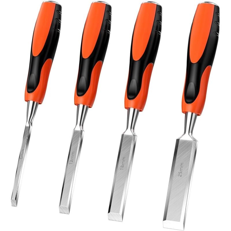 SUBZONAL-Ciseaux a Bois, Burin Sculpture Gouge Outillage, Kit Outils Ciseau Menuisier, Couteau Gouges Menuiserie Ciseau à Rainurer pour le Travail du Bois, Utils Robustes de 6Mm, 12Mm, 18Mm et 25Mm