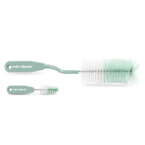 THERMOBABY - Goupillon Rotatif pour Biberons + Goupillon Tétines - Nettoyage Facile et Efficace - Prise en Main Confortable - Vert Sauge