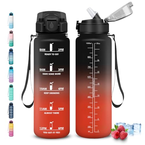 Gourde, Gourde 1l, Gourdes Sport, Anti Fuite, Gourdes Graduée pour 1 Journee, Facile à Nettoyer, Gourd Reutilisable, avec Slogan de Motivation, Bouteille d'eau pour Camping, Bureau, Randonnée, Yoga