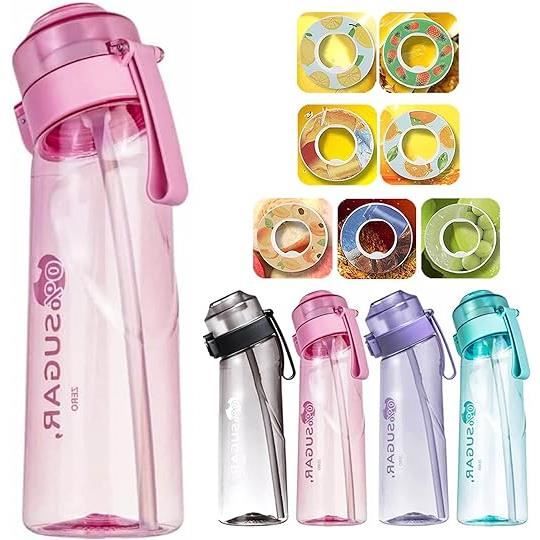 Air Gourde 650ML Bouteille Sport Paille avec 7 Pods de Gout Gourde Aromatisée Water Bottle FitnessSportsOutdoor ActivitiesRose